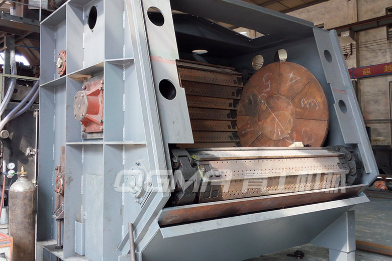 履帶式拋丸機(jī)是高強(qiáng)度耐磨橡履帶或錳鋼履帶裝載工件。它利用高速回轉(zhuǎn)的葉輪,將彈丸拋向室體內(nèi)的工件上,達(dá)到清理的目的。它適合用于小型鑄件、鍛件、沖壓件、齒輪、彈簧等件的清砂、除銹、去除氧化皮和表面強(qiáng)化,特別適用于不怕碰撞的零件的清理及強(qiáng)化。 履帶式拋丸機(jī)用橡膠履帶形成的凹腔作為工件承載體。工作時(shí),履帶轉(zhuǎn)動(dòng),帶動(dòng)凹腔內(nèi)的工件翻滾,因此零件的內(nèi)外表面均能獲得較好的清理效果。該種機(jī)型分為手動(dòng)和自 動(dòng)裝卸料方式,最適合于大批量小型零件的拋丸清理。由于采用橡膠履帶,減輕了工件與履帶的撞擊和劃痕,并且占地面積小,操作極為方便,從而為眾多廠家采 用。目前該機(jī)型有Q326,Q3210等。